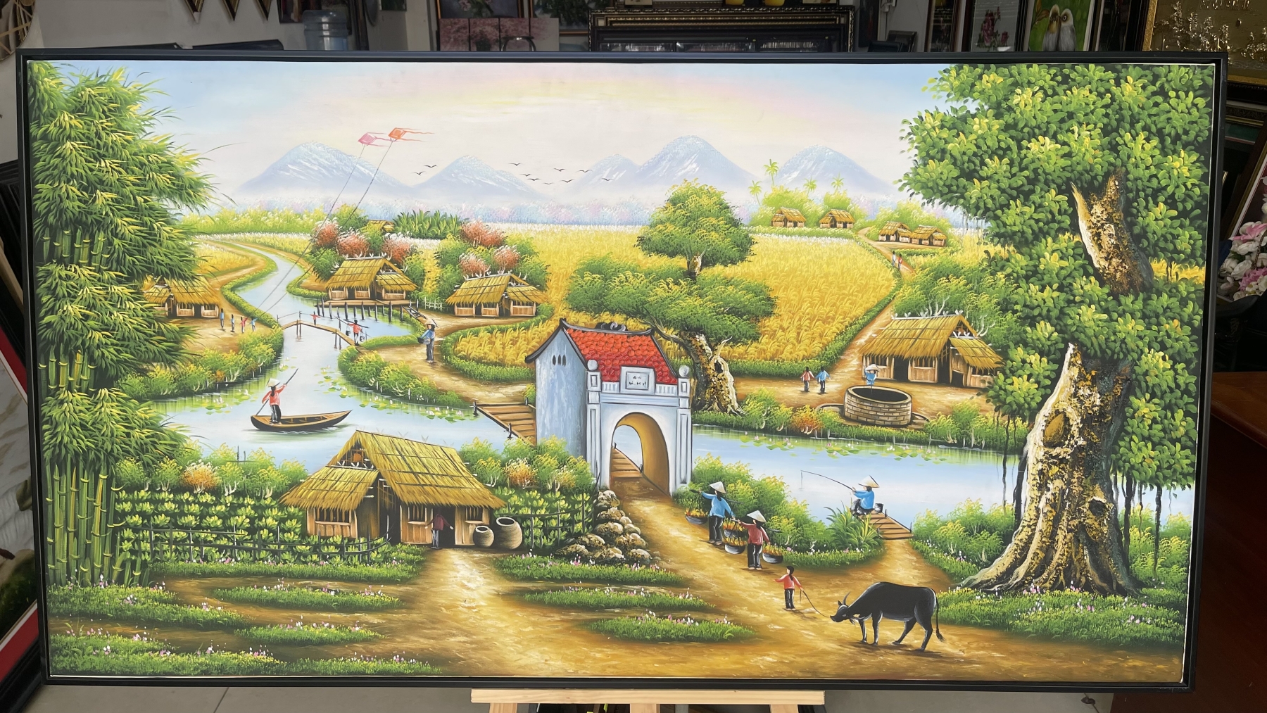 1 bức tranh sơn dầu nổi nhẹ nhàng về quê hương